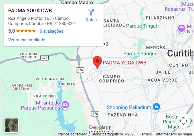 Publicado em Henrique Marquetti07/11/2025Trustindex verifica se a fonte original da avaliação é Google. Ótima experiência no Padma! Sala muito espaçosa, com piso aquecido para os dias mais frios e equipamento muito bem cuidado. A aula tem momentos desafiadores de alongamento e momentos de relaxamento. Saí com o corpo e o espírito renovados. Recomendo para quem mora na região!Publicado em Isadora Panza06/11/2025Trustindex verifica se a fonte original da avaliação é Google. A professora Jessika é extremamente atenciosa e competente. Dá para sentir o amor que ela coloca em cada aula. As práticas me ajudaram a me reconectar com o momento presente e trouxeram muito mais leveza para os meus dias. Recomendo de coração!Publicado em Giovanka Astete22/10/2025Trustindex verifica se a fonte original da avaliação é Google. Adoro as aulas da professora Jessika, do estúdio Padma Yoga. Meu condicionamento físico, alongamento e alinhamento do corpo, concentração, consciência corporal melhoraram demais. Também acabaram minhas tensões musculares no pescoço, ombros e braços depois que iniciei estas práticas de yoga terapêutica. É o tipo de aula que deve ser praticada sempre para uma melhor qualidade de vida física, mental e emocional. Super recomendo!Publicado em Jonas Dias09/07/2025Trustindex verifica se a fonte original da avaliação é Google. Publicado em Luiz Osório Panza22/05/2023Trustindex verifica se a fonte original da avaliação é Google. Uma nova opção de Yoga em Curitiba. O Padma Yoga oferece aulas e práticas de Hata Yoga, sendo um conceito de aperfeiçoamento corporal e mental. O lugar é super aprazível e tem estacionamento próprio. Vale uma visita e até mesmo uma aula experimental.Carregue maisCertificado: TrustindexO selo verificado do Trustindex é o Símbolo Universal de Confiança. Apenas as melhores empresas podem obter o selo verificado que tem uma pontuação de avaliação acima de 4.5, com base nas avaliações dos clientes nos últimos 12 meses. Leia mais